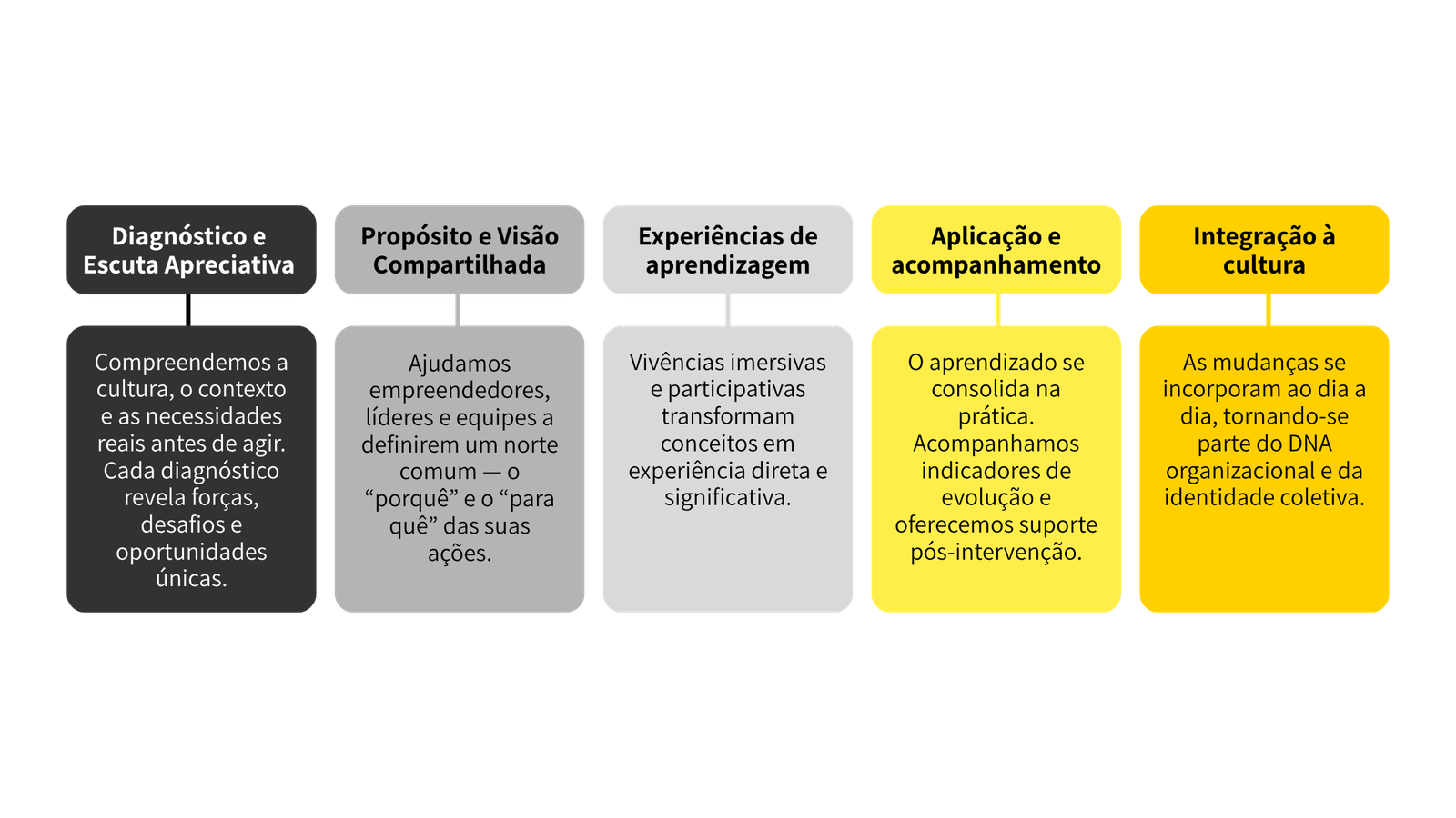 Desenvolvemos soluções personalizadas para promover bem-estar corporativo, fortalecer empreendedores e lideranças e consolidar culturas organizacionais positivas e sustentáveis.